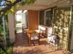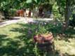 von einem Garten mit mediterranem Flair und frischer Luft umgeben ist.